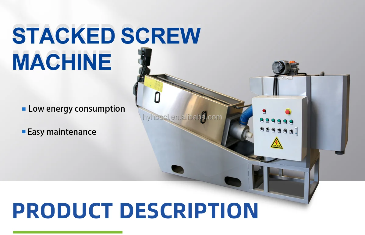 2. Sludge concentration and dehydration are integrated, and low-concentrationsludge can be directly dehydratedAutomatic Spiral Stacked Screw Type Press Sludge Dewatering Machine for Munici-pal Engineering.